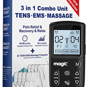 Tens Unit Muscle Stimulator Machine – Dual Channel Electronic Pulse Massager, Muscle Massager for Pain Relief Therapy with 12 Electrode Tens Unit Replacement Pads (2″x2″ and 2″x4″)