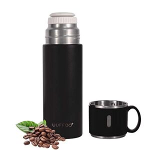 Thermoss cup Stainless Steel Vacuum Flask, Double Wall Insulated Water Bottle, Car Portable Travel Coffee Cup with Leakproof Build-in Lid Cup for Men and Women Can Be Used As a Gift.(Black)