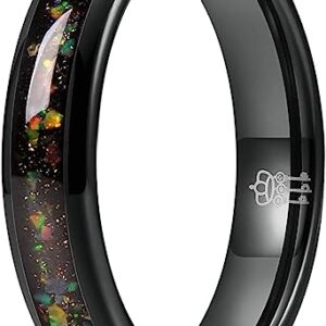 THREE KEYS JEWELRY Mens Womens 4mm 8mm Galaxy Collection Fire Created-opal Inlay Tungsten Wedding Rings Band