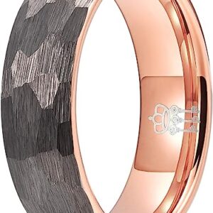 THREE KEYS JEWELRY Hammered Tungsten Wedding Rings 4mm 6mm 8mm Grey Rose Gold Inner Engagement Band