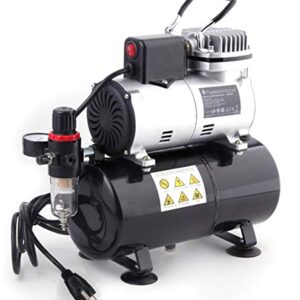 Timbertech Upgraded Airbrush Single-Piston Oil-free Mini Compressor ABPST08 with Cooling Fan, 3L Tank, Regulator, Moisture trap for hobby, tattoo, graphic and so on