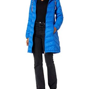 Tommy Hilfiger Women Mid-Length Puffer Hooded Down Jacket with Drawstring Packing Bag