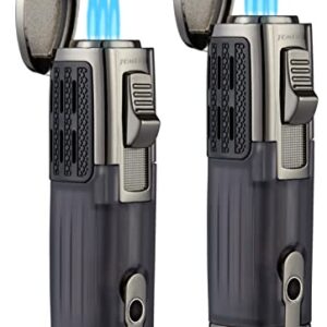 TOMOLO Torch Lighter Triple Jet Flame Refillable Butane Cigar Lighter with Cigar Punch,2 Pack,Charcoal
