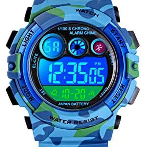 Tonnier Watch Kids Sports Watch Multi Function Digital Watches Colorful LED Display Waterproof Wristwatches for Children with PU Band