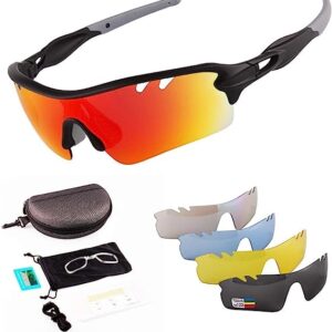 Toneoesol Sports Sunglasses,Polarized Cycling Glasses for Men Women, with 5 Interchangeable Lenses for Cycling Running