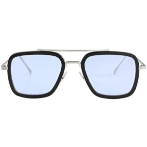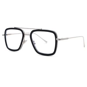 Tony Stark Clear Glasses Blue Light Blocking Glasses for Men Women, Square Metal Frame Spider Man and Iron Man Edith (Silver)