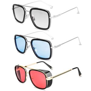 Tony Stark Sunglasses 3Pack Aviator Square Metal Frame Spiderman ironman glasses
