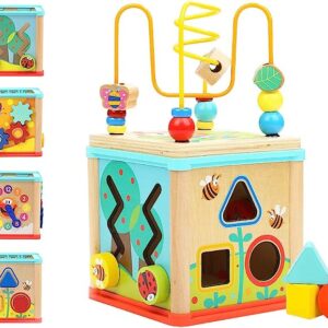 TOP BRIGHT Activity Cube Toys for 1 Year Old Boy Girl, Montessori Wooden Toys for Toddlers, One Year Old First Birthday Gift, Baby Toy for 12-18 Months with Bead Maze Shape Sorter