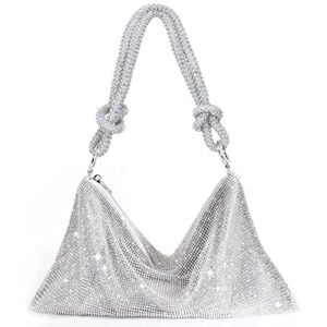TOPALL Rhinestone Purse Sparkly Bag Silver Diamond Purses for Women 2022 Upgrade Evening Prom Rhinestone Handbag Hobo Bag