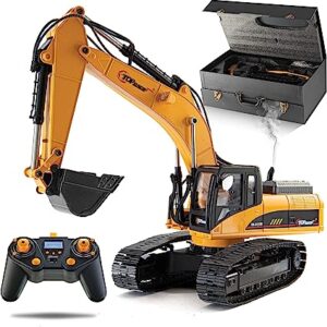 Top Race 23 Channel Hobby Remote Control Excavator, V4, Construction Vehicle RC Tractor, Full Metal Excavator Toy, Carries 180 Lbs, Diggs 1.1 Lbs Per Cubic Inch, Real Smoke, Use With our RC Dump Truck