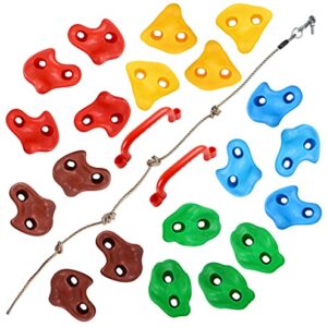 TOPNEW 20 PCS Rock Climbing Holds for Kids, Rock Wall Holds with 9.8 Ft Climbing Rope and 2 Handles, Rock Wall Climbing Kit for Indoor and Outdoor Playset – Includes 2 Inch Mounting Hardware