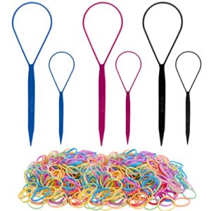 Topsy Tail Tools, WSYUB Improved Hair Braid Kit 6pcs Hair Tools Braid Accessories Ponytail Maker French Braid Tool Loop, with 300pcs Elastic Hair Bands Multi Color Girl Hair Bands for Hair Styling