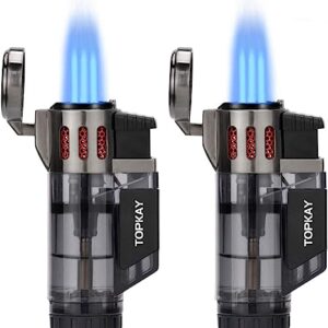 Torch Lighters ,Windproof Lighter with Visible Window,Windproof Refillable Lighter,Adjustable Jet Flame,Used for Barbecue Kitchen Fireplace Candles etc,2 Pack(Gas not Included) (Black)