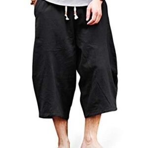 TOTNMC Men Baggy Linen Capri Pants Casual Yoga Patchowork Beach Pants with Drawstring