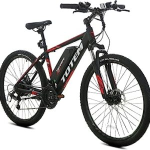 Totem Electric Bike for Adults 26”, Electric Mountain Bicycle 350W Motor, 20MPH Victor 2.0 with 36V 10.4Ah Removable Battery, E-MTB with Shimano 21 Speed Gears, Upgraded Adjustable stem