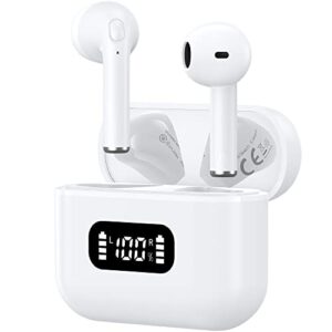 Tranya F1 Wireless Earbuds, Button Control, 32H Playtime with Wireless Charging, Bluetooth 5.3 Earphones, Half in-Ear with 4-Mics for Phone Call, IPX5 Waterproof for Sports – White