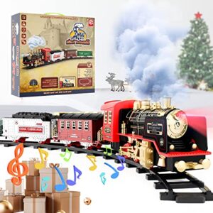 Train Set for Boys Girls Kids Toys, Electric Train Toy with Steam Locomotive Engine for Christmas Tree, Xmas Stocking Stuffers Birthday Gifts for Toddlers 3-5 4-7 Years, Realistic Sounds & Light