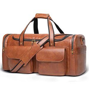 Travel Duffel Bag for Men, Large PU Leather Carry on Duffle Bag for Traveling, Waterproof Duffel Bag for Men Overnight Weekender Gym Bag with Shoe Compartment – Perfect for Daily Use/ Birthday Gift
