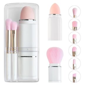 Travel Brush For Makeup – 8 in 1 Portable Blending Concealer Brush, Angled Brush, Eyeshadow Brush, Beauty Sponge, Lip Eye Smudge Powder Contouring Brush Retractable Makeup Brushes Tools