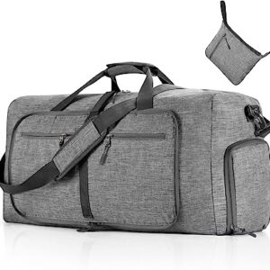 Travel Duffle Bag for Men, 65L Foldable Travel Duffel Bag with Shoes Compartment Overnight Bag for Men Women Waterproof & Tear Resistant (Gray)