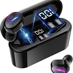 True Wireless Earbuds, BD&M Bluetooth 5.0 Earbuds in-Ear TWS Stereo Headphones with Smart LED Display Charging Case Waterproof Built-in Mic for Sports Work – Black