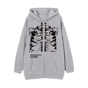 tuduoms Women Skeleton Zip Up Hoodies Lightweight Long Sleeve Oversized Sweatshirts for Girls Y2k Goth Aesthetic Clothing