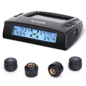Tymate Tire Pressure Monitoring System – M7-3 TPMS Tire Pressure Monitor System with Solar Charger, TPMS w/ 5 Alarm Modes, LCD Display, Auto Sleep Mode, 4 TPMS Sensors, Easy to Install (0-87 PSI)