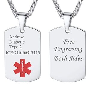 U7 Medical ID Tag Pendant Stainless Steel 18K Gold Plated Custom Emergency Dog Tags Pendant in Classic Tag/Cross/Heart/Round Shape Necklaces for Men Women