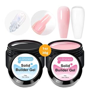 U-Shinein Solid Builder Gel, 2PCS Nail Extension Gel Solid Sculpture Gel Hard Gel, Non-Sticky Hand Nail Carving Gel, Nail Art Modeling Gel, Solid Nail Building Gel Nail DIY Charms Gel Clear Pink, 30ml
