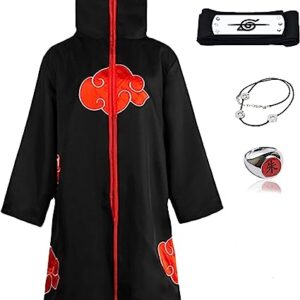 Akatsuki Cloak Kids – Anime Cosplay Costume Long Cloak with Headband Ring – Unisex Halloween Uniform for Girls and Boys