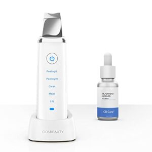 Ultrasonic Skin Scrubber Blackhead Remover Tools Set, COSBEAUTY Skin Spatula Exfoliating Scraper Includes Blackhead Power Liquid | Skincare Moist Assistor, Wireless Charging, IPX6 Waterproof