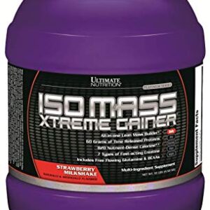 Ultimate Nutrition ISO Mass Xtreme Gainer, Isolate Protein Powder with Creatine – Weight Gain Serious Lean Muscle Mass with 60 Grams of Protein, Strawberry Milkshake, 30 Servings