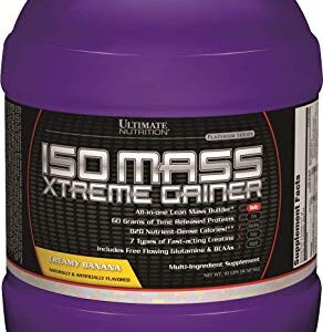 Ultimate Nutrition ISO Mass Xtreme Gainer, Isolate Protein Powder with Creatine – Weight Gain Serious Lean Muscle Mass with 60 Grams of Protein, Banana, 30 Servings