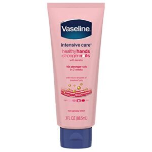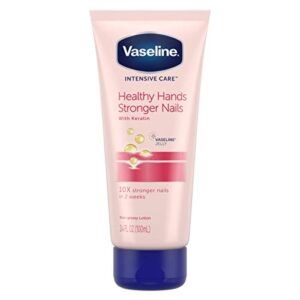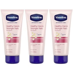 Vaseline Intensive Care Healthy Hands Stronger Nails Lotion with Keratin, Vitamin E, Moisturize Skin & Cuticles, Unscented Lotion, 3 Tubes – 3.4 oz. each