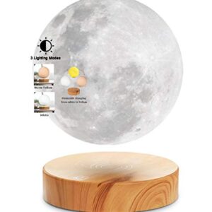 VGAzer Levitating Moon Lamp,Floating and Spinning in Air Freely with 3D Printing LED Moon Lamp Has 20 Modes for Unique Gifts,Room Decor,Night Light,Office Desk Toys (Wooden Base 3 Colors)