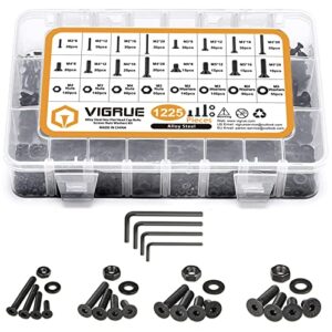 VIGRUE 1225PCS Metric M2 M3 M4 M5 Flat Hex Head Socket Cap Screws Alloy Steel Small Bolts Nuts Washers Assortment Kit, Allen Socket Drive with 4Pcs Hex Wrenches