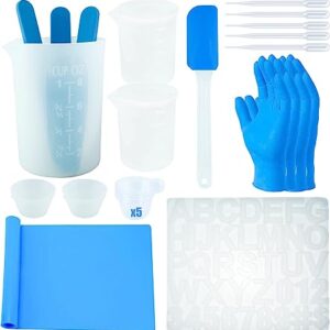 Viewmoi Silicone Resin Kit, Resin Measuring Cups Tool Kit, Sheet for Crafts Jewelry Casting Mould Mat, Alphabet Resin Molds, Silicone Popsicle Stir Sticks & Spatula, Pipettes, Gloves