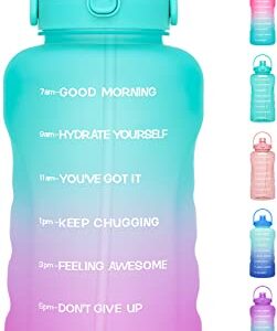 Water Bottle with Straw, 128oz BPA Free Leak-proof Water Bottle with Times to Drink Perfect for Fitness Gym Camping Outdoor Sports, Gallon Water Bottle