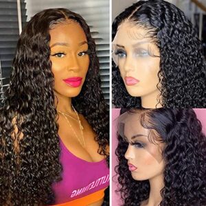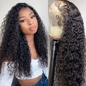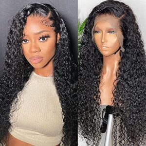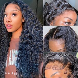 Water Wave Lace Front Wigs Human Hair Pre Plucked 180% Density 13×4 Deep Curly Wigs for Black Women 10A Brazilian Human Hair Transparent Lace Front Wigs Glueless Wet and Wavy Lace Frontal Wigs Natural Color (20inch, 13X4 water wave wig)