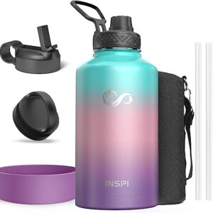 Water Bottles Insulated 64oz, INSPI Water Bottle with Straw Lid, Half Gallon Large Water Jug Wide Mouth, Triple Wall Vacuum Stainless Steel Thermal Hydro Jug, Keep Cold for 48Hrs, Hydrangea
