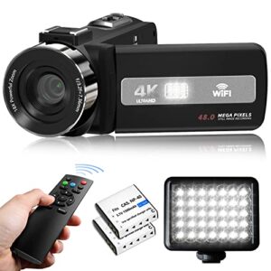 WIKICO Video Camera, 4K Camcorder 48MP 18X Digital Zoom Manual Focus Camera, 3.0″ Touch Screen Vlogging Camera for YouTube with WiFi, 2.4G Remote Control, Fill Light, 2 Batteries