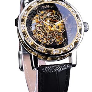 Winner Retro Manual Mechanical Skeleton Watch with Diamond and Carving Flower Craft Men Skeleton Wrist Watch Mechanical Classic Roman Number