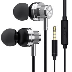 Wired Earbuds,Tijjywwil Earphones,Headphones with Built-in Microphone-High Definition,Noise Isolating,Metal Earphones,Fits All in-Ear Headphones with 3.5mm Headphone Port Device Compatibility(Silver)