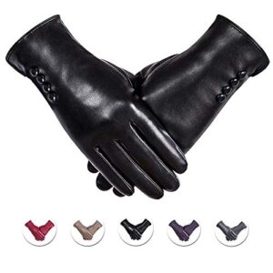 Winter PU Leather Gloves For Women, Warm Thermal Touchscreen Texting Typing Dress Driving Motorcycle Gloves With Wool Lining