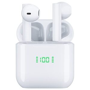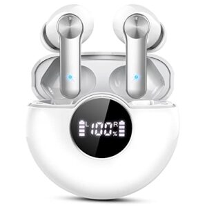 Wireless Earbuds Bluetooth Headphones 60Hrs Playback Clear Call Wireless Charging Case with LED Power Display Built-in Mic Stereo Headset Sweatproof occiam Waterproof Earphones for Workout White