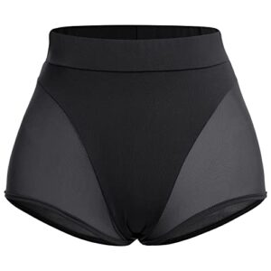 Women High Waist Mesh Tulle Spliced Activewear Yoga Shorts Dance Bottoms Rave Booty Shorts Mini Hot Pants Clubwear