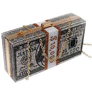Women Money Clutch Purse Rhinestone Bling Glitter Evening Handbag Dollar Crossbody Shoulder Bag
