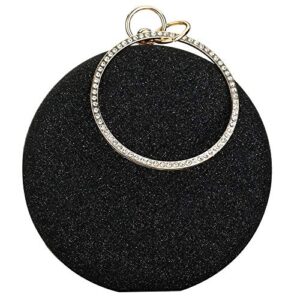 Women Round Glitter Clutch Bag Top Handle Handbags Purse with Chain Circular Rhinestone Ring for Proms Wedding Evening