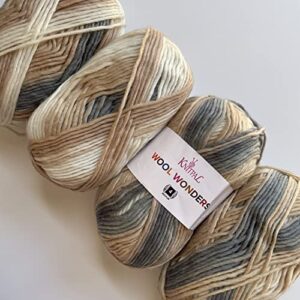 Wool Wonders Variegated Ombre Medium Heavy Worsted/ Aran Weight #4 Yarn, 30% Australian Wool and 70% Acrylic, 4 Skeins, 400g/640yds (Neutral Beige)