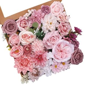 WXBOOM Artificial Pink Flowers Combo Box Set, Fake Blush Pink Roses Bulk for Wedding Bouquets DIY Centerpieces Arrangements Bridal Shower Table Decorations